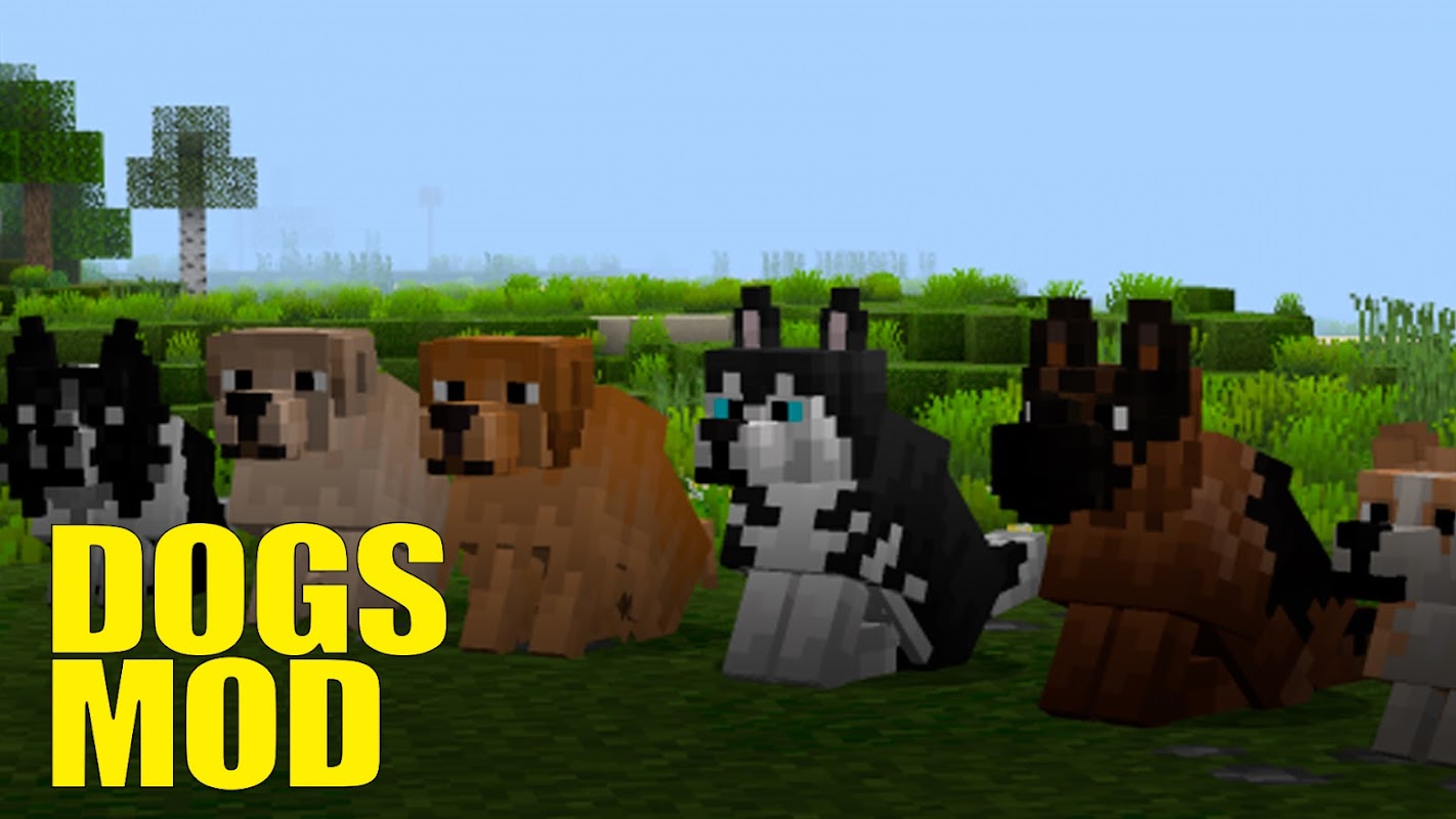 Dogs Mod for Minecraft PE add a cool and fast dogs. Make a pet!