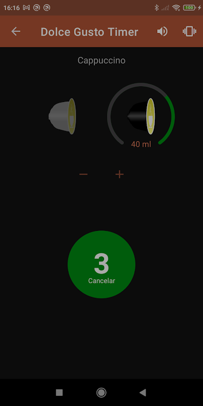 برنامه Dolce Gusto Timer به تهیه نوشیدنی در ماشین های غیر اتوماتیک کمک می کند که نشان دهنده خاموش شدن دستگاه با توجه به نوشیدنی انتخابی با استفاده از زنگ صوتی و لرزش دستگاه است.