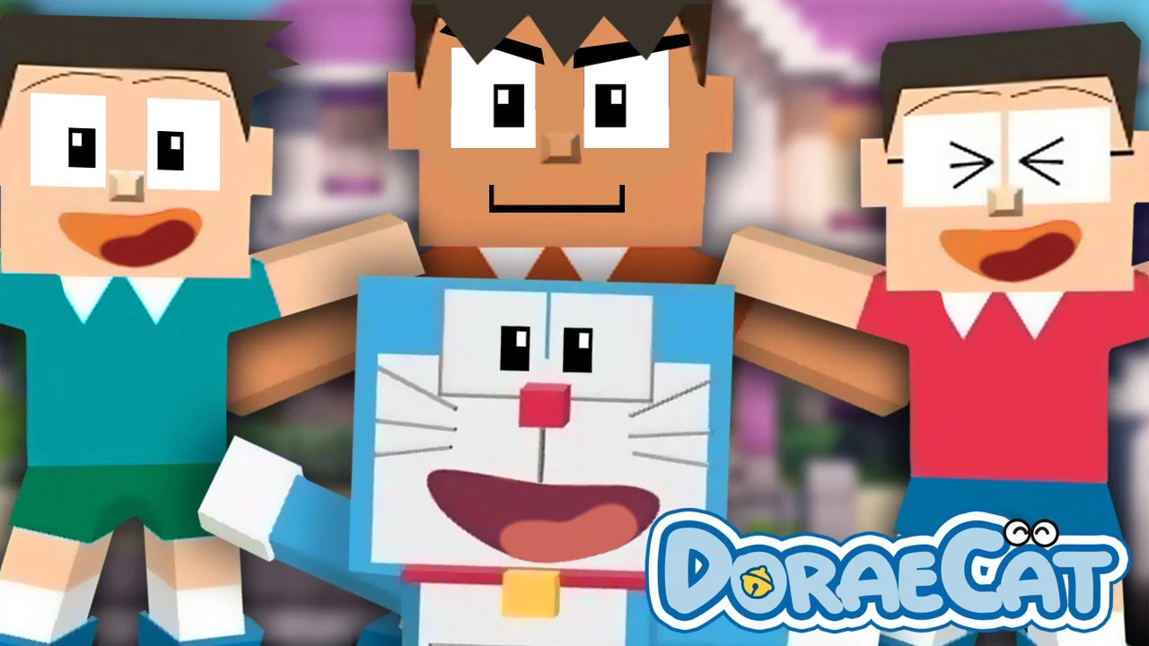 play with doraeman, the blue robot cat from the future in minecraft
