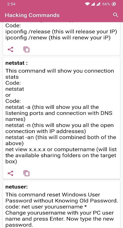 In this application all commands available for MS-DOS (cmd), In windows command prompt available to complete the task in CLI so with the help of this application you guys can learn how and which command is used to perform or complete the particular task in command line interface.