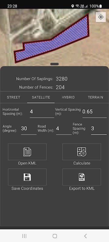 برای محاسبه تعداد نهال های قابل کاشت در مزرعه خود کافی است پس از تعیین فاصله افقی و عمودی نهال، فایل KML مزرعه خود را باز کنید. همچنین می توانید زاویه ردیف نهال ها را مشخص کنید. برنامه تعداد کل نهال ها و مختصات هر نهال را به صورت پرینت به شما می دهد. همچنین می توانید این نقاط را به عنوان فایل های KML ذخیره کرده و بعداً در این برنامه یا برنامه Google Earth باز کنید. در حین محاسبه، در صورت تمایل می توانید مساحت های ساختمان را نیز در داخل زمین ترسیم کنید. بنابراین، این مناطق از حساب نهال حذف می شوند. بنابراین، در حالی که محاسبه نهال انجام می شود، این زمینه ها از محاسبه خارج می شوند.