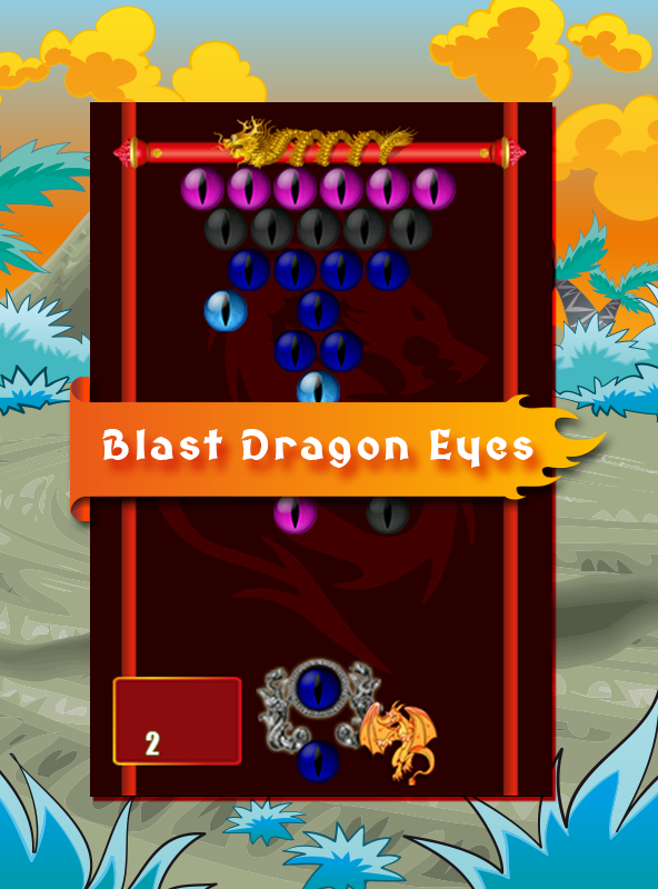 Our dragon hero is very angry and impatient. Be quick at throwing eye bubbles and clear the board, or the dragon will throw the eyes on his way which brings trouble. To play the upper exciting puzzle and arcade levels, you should pop all the bubbles in a shortest time. Feel as if you were in dragon age while blasting angry dragon eyes bubbles as a bubble blaster .