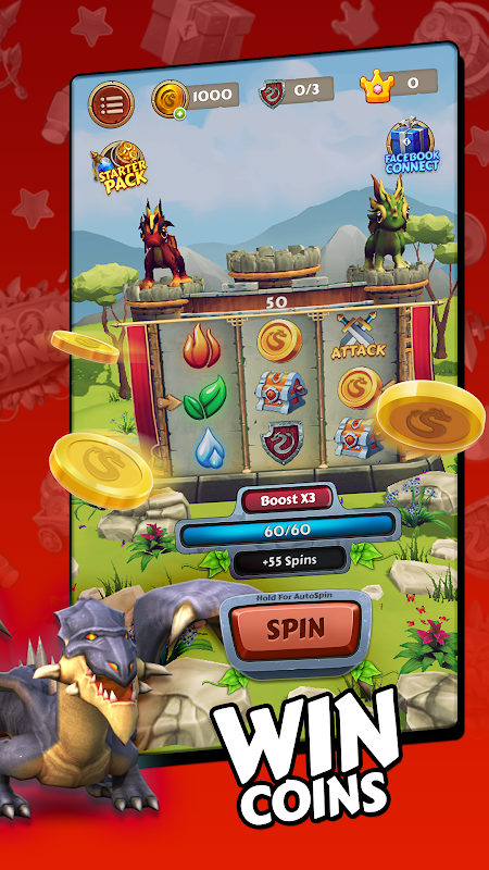 برای بدست آوردن ثروت خود بچرخید، حمله کنید، حمله کنید یا سکه ها را بدزدید. از جزایر و سکه های خود در برابر حملات دیگر بازیکنان محافظت کنید. جزیره خود را با سکه بسازید و به سمت بالا حرکت کنید تا قفل جزایر مقصد جدید را باز کنید. با بهترین جزیره استاد اژدها شوید!