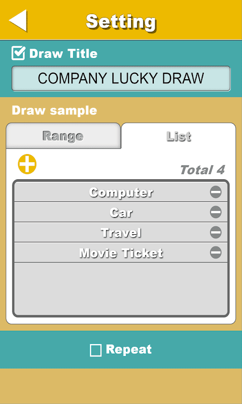 And also set the title of lucky draw, and whether to repeat the winning and other options.