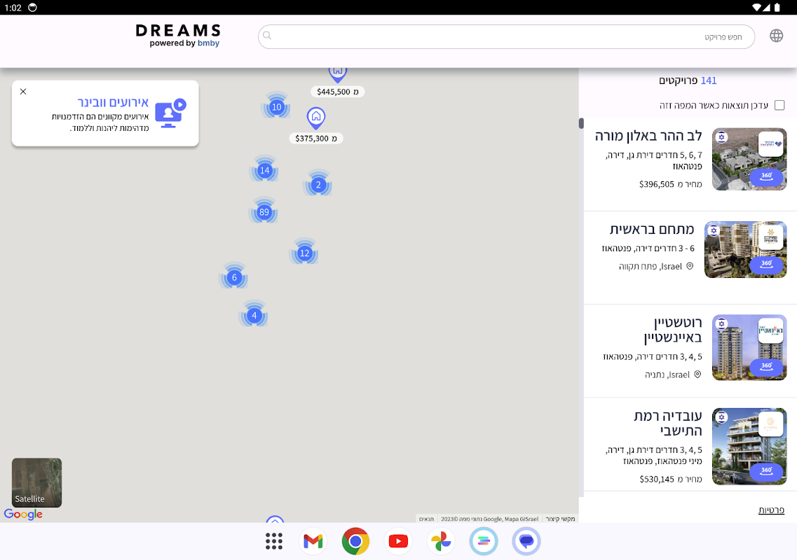 برنامه BMBY DREAMS، شامل پروژه های املاک و مستغلات بر روی نقشه اسرائیل