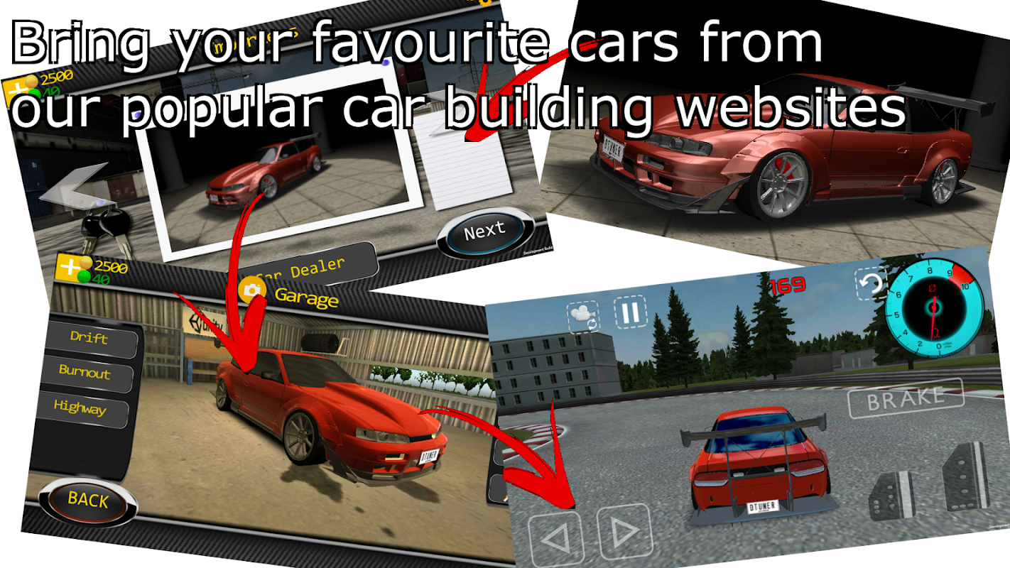 Drift Tuner works in conjunction with Car Customization websites such as STuner.net to give players the ability to build and design their own cars, then utilise them in a range of different driving events.