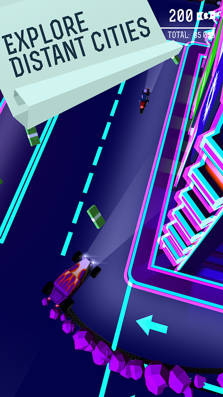 Robbing a bank has never been easier - you just need to handle a simple one tap mechanics to hit the road. A working thumb is literally everything you need. Beware of the police though as they won’t stop chasing and trying to smash you. If you hit another car or a building during the chase, you're busted. You have a long way ahead of you and plenty of time to develop your skill and to find out if you can beat your friends on the global leaderboards.