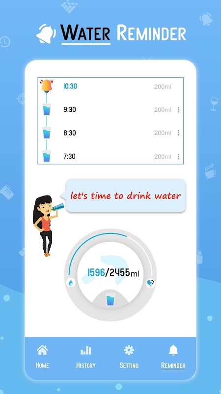 • Our reminder feature allows you to set the time interval of notifications, enable/disable notifications, reminder sound, vibration, LED