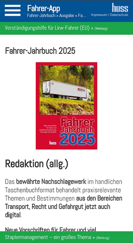 اپلیکیشن رانندگان HUSS-VERLAG در پایان سال ۲۰۲۵ دوباره راهاندازی شد. تمام نقد و بررسیهای قبل از نوامبر ۲۰۲۵ به نسخههای قبلی اشاره دارند که دیگر در دسترس نیستند.