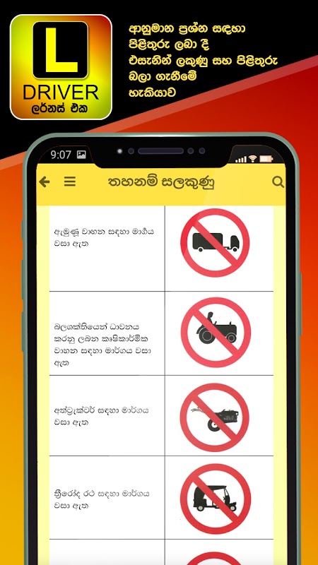 මෙම යෙදුම භාවිතය මගින් ඉතා පහසුවෙන් රියදුරු පුහුණු ප්රශ්න، මාර්ග සලකුණු රීති සහ අචාරධර්ම පිළිබඳ දැනුම ඔබටගර්ම