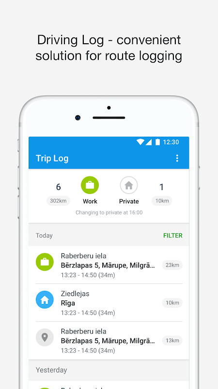 Driving Log allows you to manage your private and work trips. You can easily add comments, client name and costs to each route and view reports in the system.