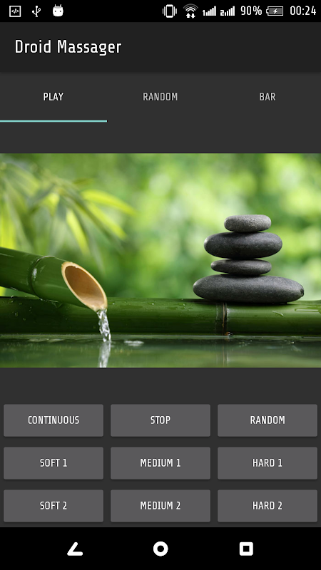 DroidMassager ارائه حالت لرزش های متعدد از شدت کم به شدت سخت است.