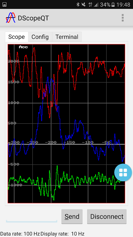 اسیلوسکوپ با رندر انعطاف پذیر، متن / جریان دودویی، BT، USB، TCP، سریال.
