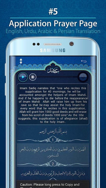 3- Optional playing bar to play favorite part of the prayer