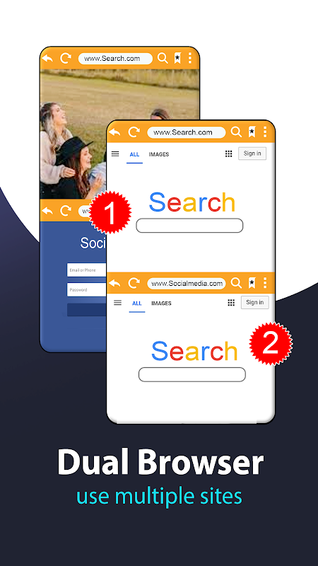 معرفی برنامه مرورگر دوگانه، تجربه نهایی مرور برای دستگاه اندرویدی شما! با استفاده از این جستجوی ایمن سریع - برنامه مرورگر ایمن، اکنون می توانید از مرور همزمان دو وب سایت در یک صفحه لذت ببرید و چندوظیفه ای را آسان کنید.