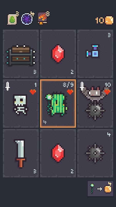 Dungeon Cards 2 یک خزنده سیاهچال نوبتی با عناصر پازل و سرکش است. کارت خود را در یک شبکه حرکت دهید، با کارت های همسایه - هیولاها، تله ها، معجون ها، سلاح ها و موارد دیگر تعامل کنید. هدف: تا جایی که ممکن است طلا جمع آوری کنید. نمرات بالا سطوح، قهرمانان و توانایی های جدید را باز می کند.