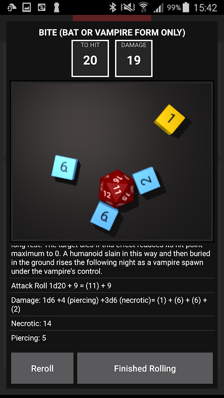 Find, summon and track monsters with this app for 5e. It contains the Open Game License bestiary for 5e rpg, but you can also import other creatures from other sources. Use the automated dice rollers for the creature's attacks, and easily track the creature's hit points with a handy health bar.