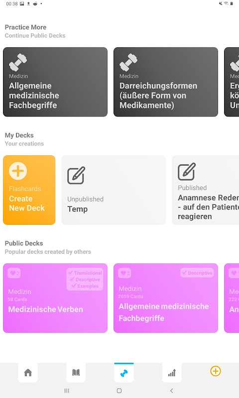 All the words you translate can be made into flashcards, you can revise them in the Practice section, whenever you want.