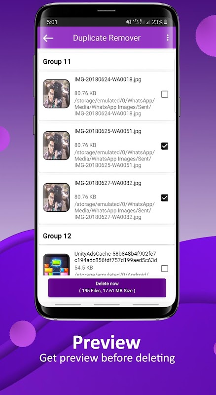 آسان برای پیدا کردن و آسان برای حذف. چه کسی دوست ندارد تلفن خود را از تمام فایل های تکراری آزاد کند؟ این برنامه همه موارد تکراری را حذف می کند.
