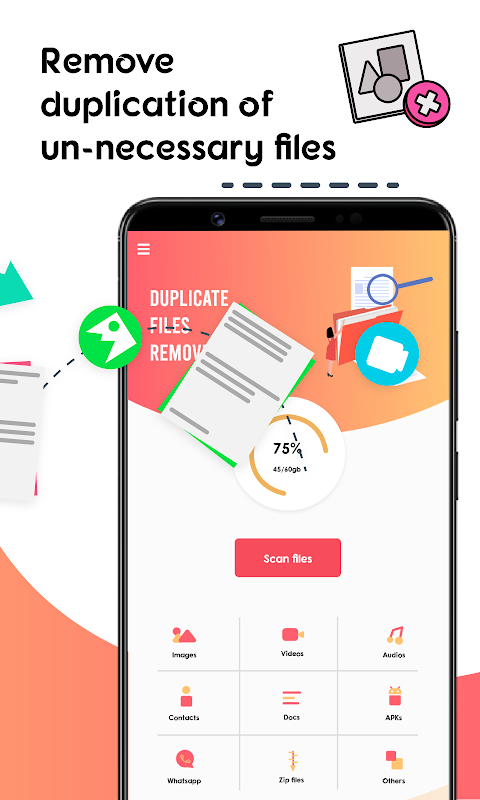 Here is the Duplicate Image Remover or you can also call it as Duplicate Photos Remover or Duplicate Media Remover or Duplicate Song Remover or Any Duplicate File Remover or Any Duplicate Video File Remover for you which can scan through your entire phone and finds the duplicate files of any media video and all other types files for you. You can make judgement yourself if you want to delete by selecting them.