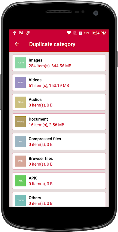 * Categorized duplicate files like duplicate images, duplicate videos, duplicate audios, etc