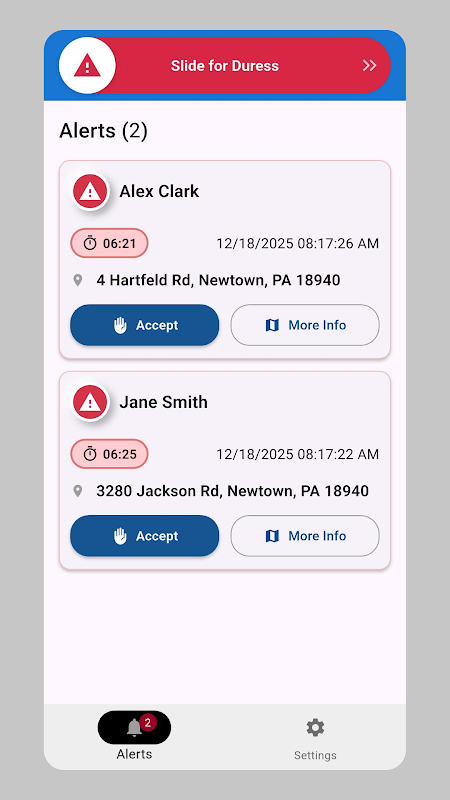 این اپلیکیشن به طور مداوم نشانهای اضطراری بلوتوث کممصرف (BLE) را اسکن میکند و حضور کارکنان و فشردن دکمه نشان را حتی در هنگام اجرا در پسزمینه تشخیص میدهد.