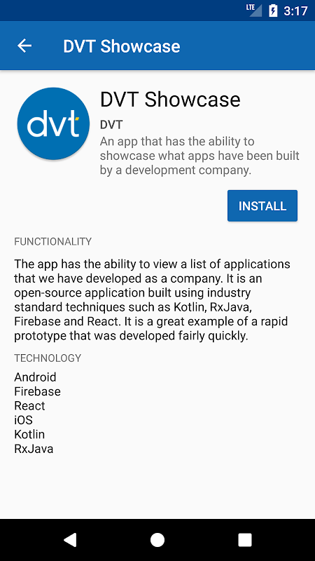 This application was designed for the use of showcasing the different applications that DVT has developed in the past.