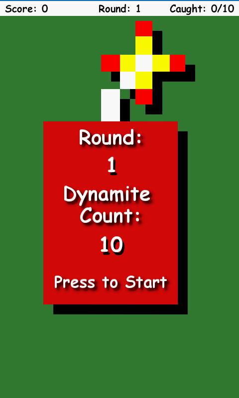 Use your finger to move the buckets left and right to catch the falling dynamite. Each time you catch a stick of dynamite you score points. When you miss a stick of dynamite all the dynamite explode and you lose a bucket. Lose all three buckets and the game is over.