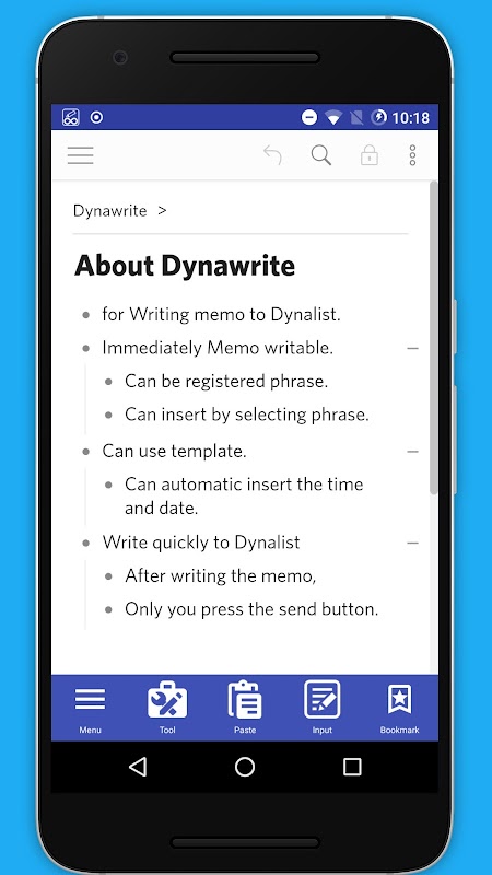 به سرعت تبدیل به Dynalist صفحه نمایش.