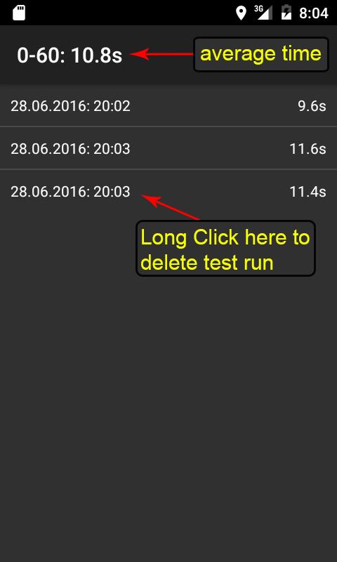 & # 8226؛ برای فعال کردن اجرای آزمون، ابتدا باید آن را انتخاب کنید. سپس در پشت آزمایش "آماده" ظاهر می شود. اندازه گیری به طور خودکار شروع می شود به محض شروع به سرعت شروع می شود و یا وسیله نقلیه شتاب می شود.