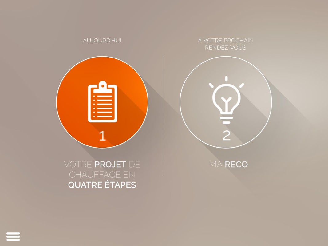 Simple et intuitive, l’application E-conseil vous permet de découvrir les attentes et motivations de vos clients, et d’apporter la solution personnalisée en valorisant votre savoir-faire de professionnel, le tout en 2 RDV.