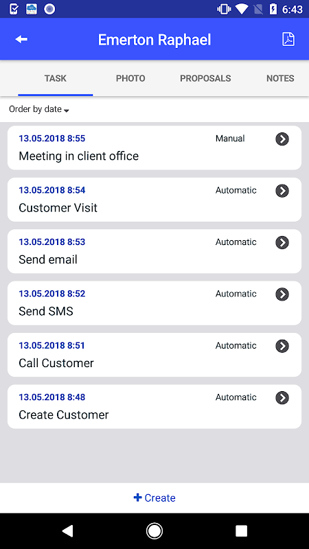 - Activities - Automatic tracking of activities related to the customer (phone calls, sending SMS / email, creating estimates, ...). Manual tracking Activities.