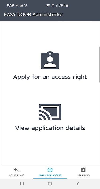 EASY DOOR توسط HT ACCESS طراحی شده است و به نصابان اجازه می دهد تا کارت های RF را از طریق Blue Tooth در تلفن HT Lobby ثبت کنند، داده ها را آپلود کنند، تنظیمات کنترل دسترسی و سایر عملکردها را به راحتی ثبت کنند.