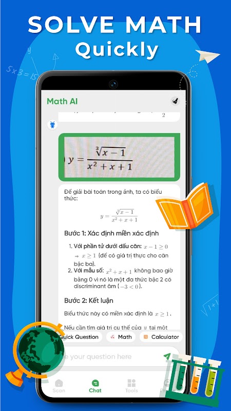 با برنامه حلکننده ریاضی هوش مصنوعی، میتوانید مسائل ریاضی را در همه سطوح، از محاسبات پایه گرفته تا حسابان پیشرفته، حل کنید و حتی به سؤالات موضوعاتی مانند شیمی و علوم پاسخ دهید. این برنامه فقط یک حل کننده ریاضی نیست، بلکه معلم همه کاره هوش مصنوعی شماست. ویژگی های قدرتمندی را که باعث می شود این برنامه از بقیه متمایز شود، کشف کنید!