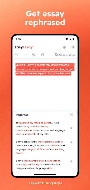 EasyEssay یک ابزار قدرتمند برای نویسندگان در تمام سطوح است. می تواند به سرعت یک مقاله تولید کند، یک جمله را بازنویسی کند، یک پاراگراف را بر اساس یک جمله موضوعی خاص بسازد و نقل قول های مرتبط را ارائه دهد. این یک منبع عالی برای دانش آموزان و متخصصان است، زیرا می تواند به صرفه جویی در وقت هنگام تحقیق و نوشتن کمک کند. علاوه بر این، دقت و قابلیت اطمینان خروجی های EasyEssay بسیار قابل اعتماد است و آن را به یک دارایی ارزشمند برای هر نویسنده تبدیل می کند.