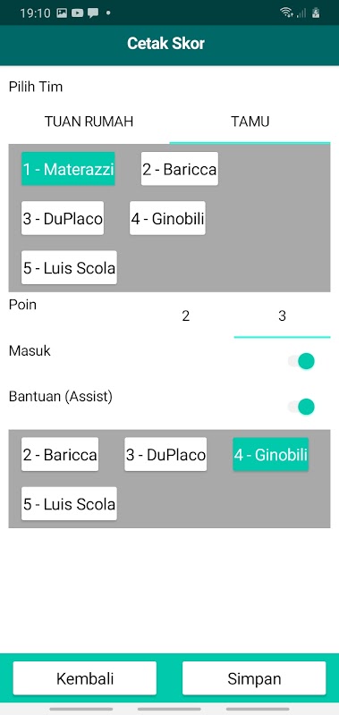 A tool to acquire statistical data in a basketball match in FIBA/NBA standard.
