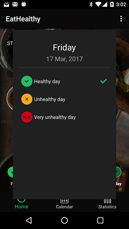 در پایان روز، به یاد غذا خوردن انتخاب خود را در طول روز و یک "آگاهانه" تصمیم به امتیاز دهی سالم، ناسالم و یا یک روز بسیار ناسالم.