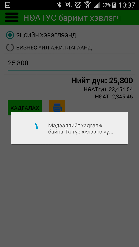 Бизнес эрхлэгч Та гар утасаа ашиглан НӨАТУС төлбөрийн баримт хэвлэн өгч болно.