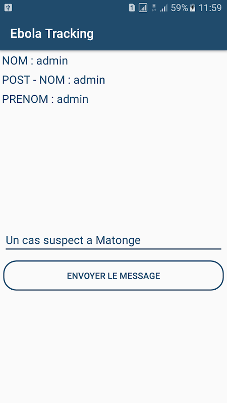 Cette application permet de localiser les personnes atteintes ou suspectes du virus Ebola. Ceci dans le but d'alerter les agents concernés dand l'éradication de l'épidémie.