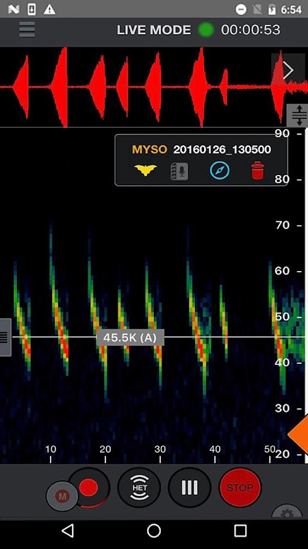 حالت ضبط را فعال کنید تا به طور خودکار گذرگاه های خفاش را به تمام طیف فایلهای .wav برای تجزیه و تحلیل بر روی رایانه یا مشاهده در دستگاه Android خود فعال کنید. یا برای کنترل شروع و توقف ضبط از حالت ضبط دستی استفاده کنید. طیف سنج ضبط را مشاهده کرده و یادداشت های صوتی یا متنی را اضافه کنید. ضبط را با استفاده از RTE ، HET یا پخش پخش زمان گسترش سنتی (گوش دادن به سرعت کسری برای شنیدن سونوگرافی) گوش دهید.