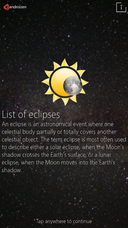 این برنامه اندروید را نمایش لیست تمام کسوف و خسوف در حال سقوط در دوره 2000-2099