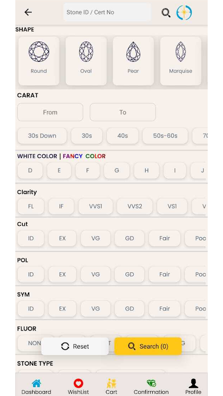 3. جستجوی پیشرفته الماس: از فیلترهای جستجوی پیشرفته ما برای اصلاح انتخاب الماس خود بر اساس ترجیحات خود استفاده کنید. بر اساس شکل، وزن قیراط، رنگ، شفافیت، و برش را فیلتر کنید تا گزینه هایی را که با نیازهای خاص شما مطابقت دارند، محدود کنید. الماس هایی را کاوش کنید که با ویژگی های مورد نظر شما مطابقت دارند