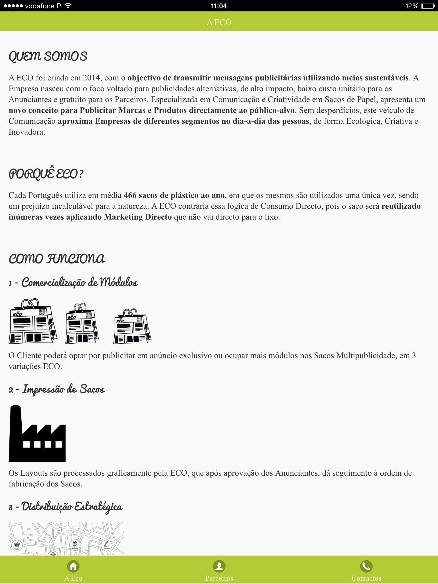 A Empresa nasceu com o foco voltado para publicidades alternativas, de alto impacto, baixo custo unitário para os Anunciantes e gratuito para os Parceiros. Especializada em Comunicação e Criatividade em Sacos de Papel, apresenta um novo conceito para Publicitar Marcas e Produtos directamente ao público-alvo.Sem desperdícios, este veículo de Comunicação aproxima Empresas de diferentes segmentos no dia-a-dia das pessoas, de forma Ecológica, Criativa e Inovadora.