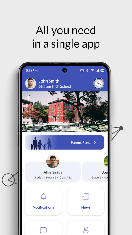 مطلع و متصل بمانید: به اخبار دسترسی پیدا کنید، اعلانها را دریافت کنید، تقویمها را مشاهده کنید و به فهرستهای کارکنان و والدین دسترسی داشته باشید.