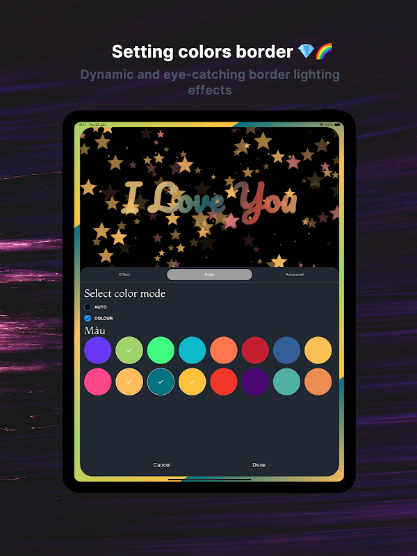 لبه صفحه چند رنگ: یک لبه چند رنگ پر جنب و جوش را برای کاغذ دیواری زنده خود تنظیم کنید.