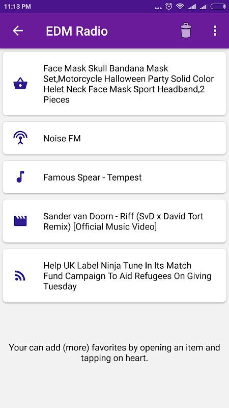 * اضافه کردن رادیو، آهنگ یا ویدیو به علاقه مندی ها