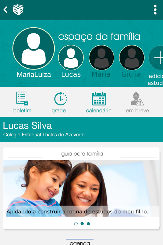 No aplicativo, a Secretaria da Educação também disponibiliza o Guia para a Família, com orientações para melhor acompanhar a vida escolar dos filhos, tanto em casa, como junto à escola, visando melhorar o desempenho dos estudantes e da escola.