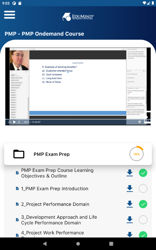 EduMind از سال 2004 تجربیات یادگیری دانش آموزان را متحول کرده است. با دوره های آمادگی PMP در محل و دوره های آمادگی آزمون PMP زنده آنلاین شروع شد. ما اکنون دوره های بررسی برای چندین گواهینامه PMI، ARE برای معماران و آمادگی آزمون NCLEX برای پرستاران ارائه می دهیم. این دوره ها توسط دانشجویان در سراسر جهان استفاده می شود. برای ادامه ارتقای خدمات آموزشی خود، مرکز مطالعه خود را به سادگی با استفاده از این برنامه به کف دست شما آورده ایم. با استفاده از این برنامه نه تنها می توانید به مطالب درسی دسترسی پیدا کنید، بلکه می توانید در حال حرکت در آزمون ها شرکت کنید. لیست زیر تنها برخی از ویژگی های هیجان انگیز دیگری است که این برنامه ارائه می دهد: