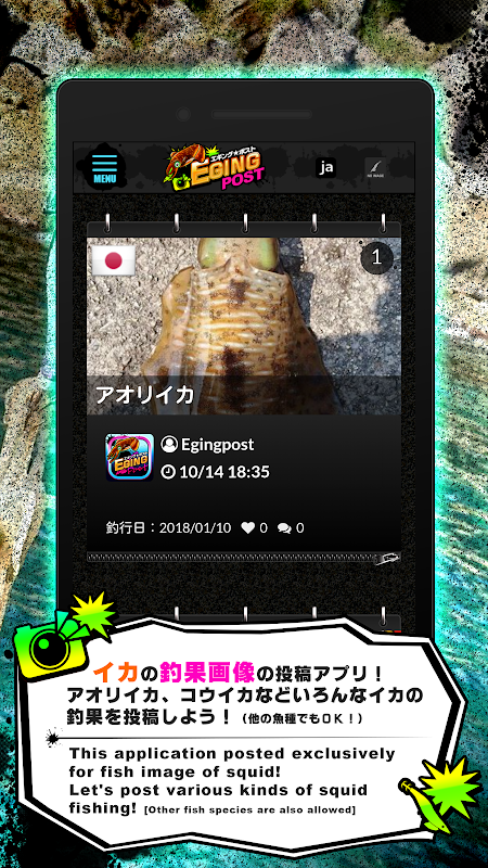 エギング体験アプリ「Egingcast」に続き、イカの釣果投稿アプリをリリース!世界中のイカ釣りファンの皆様の釣果を共有したいという思いで作りました。