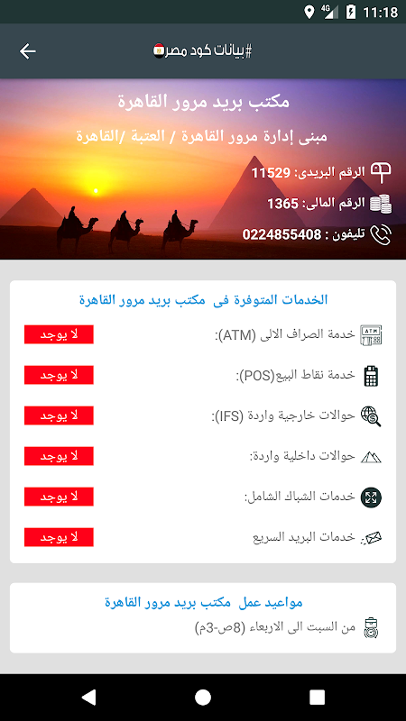 این برنامه به هیچ وجه به پست مصر وابسته نیست و هیچ نهاد دولتی را نمایندگی نمی کند. ما یک برنامه شخص ثالث هستیم که فقط به منابع عمومی و بازخورد کاربر متکی است.